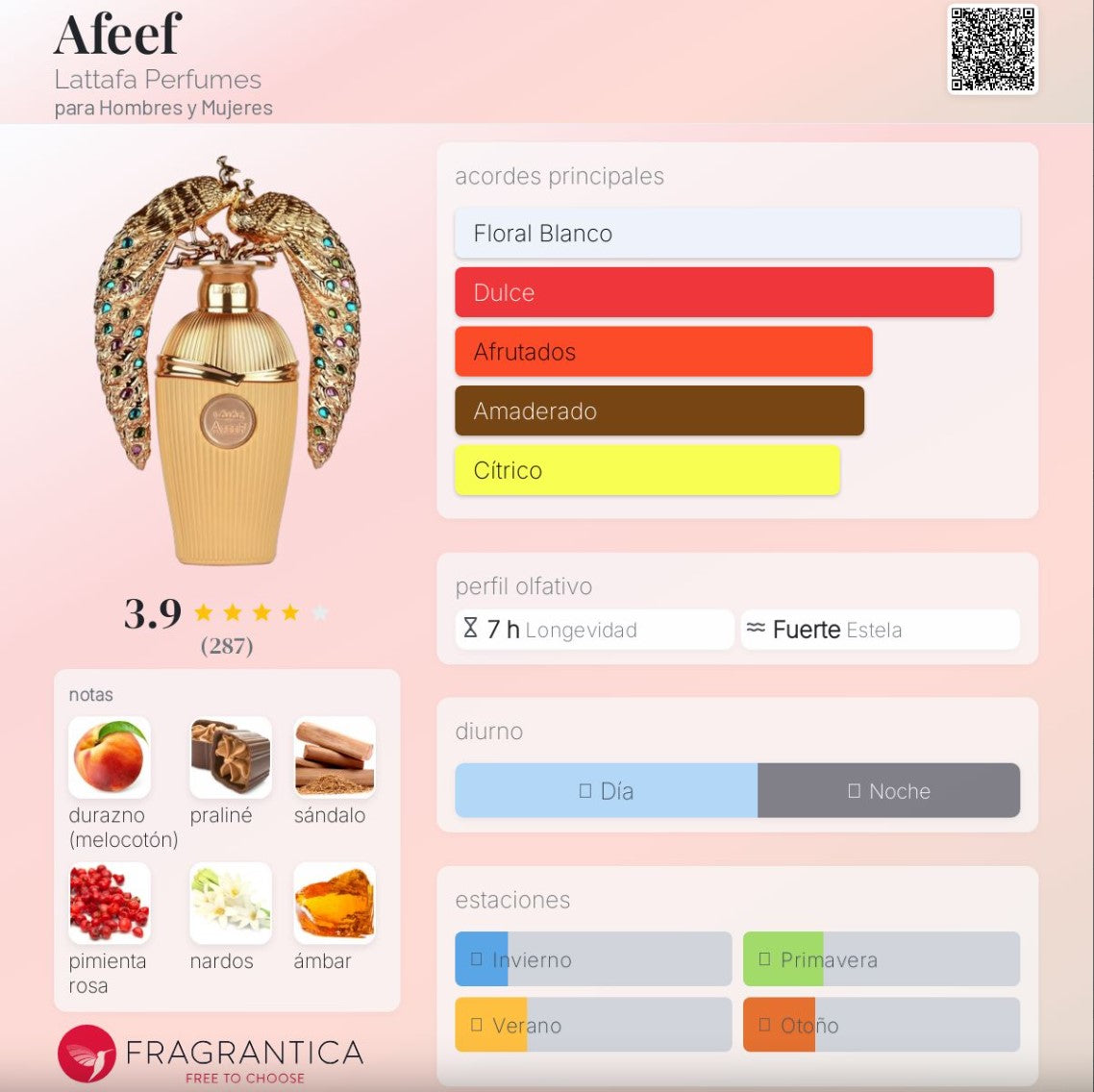 Lattafa Afeef es un perfume unisex moderno y envolvente que combina frescura, dulzura y elegancia.
